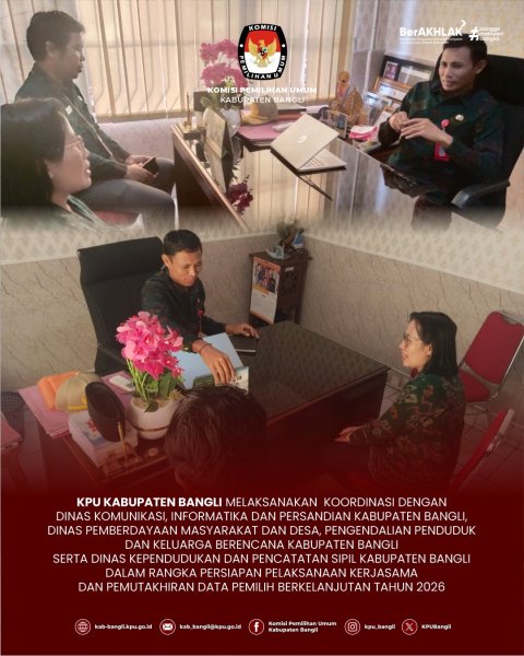 Selain itu, Divisi Perencanaan, Data dan Informasi KPU Kabupaten Bangli, Ni Putu Anom Januwintari juga melakukan koordinasi dengan Dinas Kependudukan dan Pencatatan Sipil (Disdukcapil) Kabupaten Bangli untuk memastikan sinkronisasi data kependudukan. Langkah ini diharapkan dapat menghasilkan daftar pemilih yang akurat dan mutakhir, sehingga proses demokrasi berjalan transparan, partisipatif, dan terpercaya.