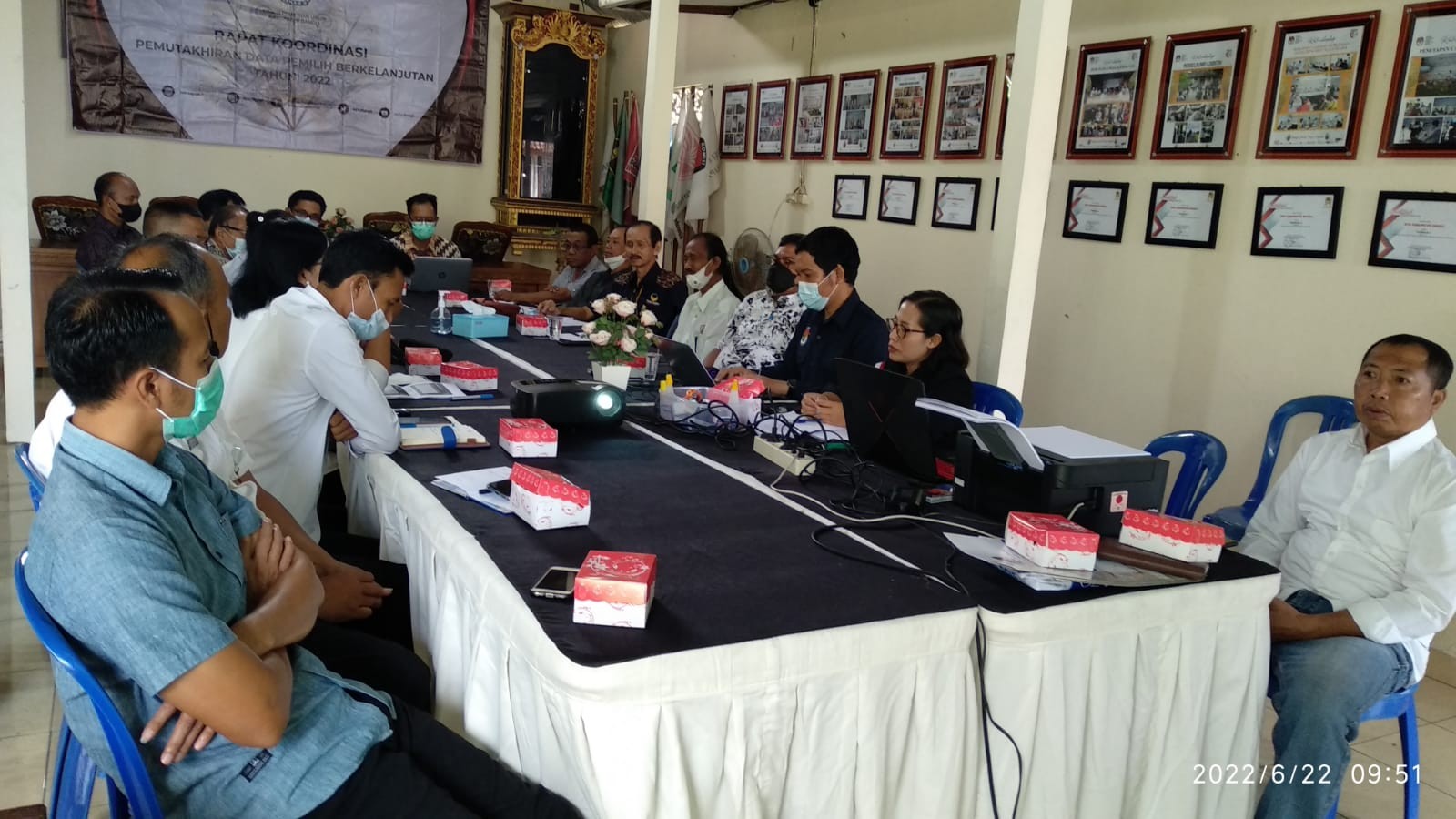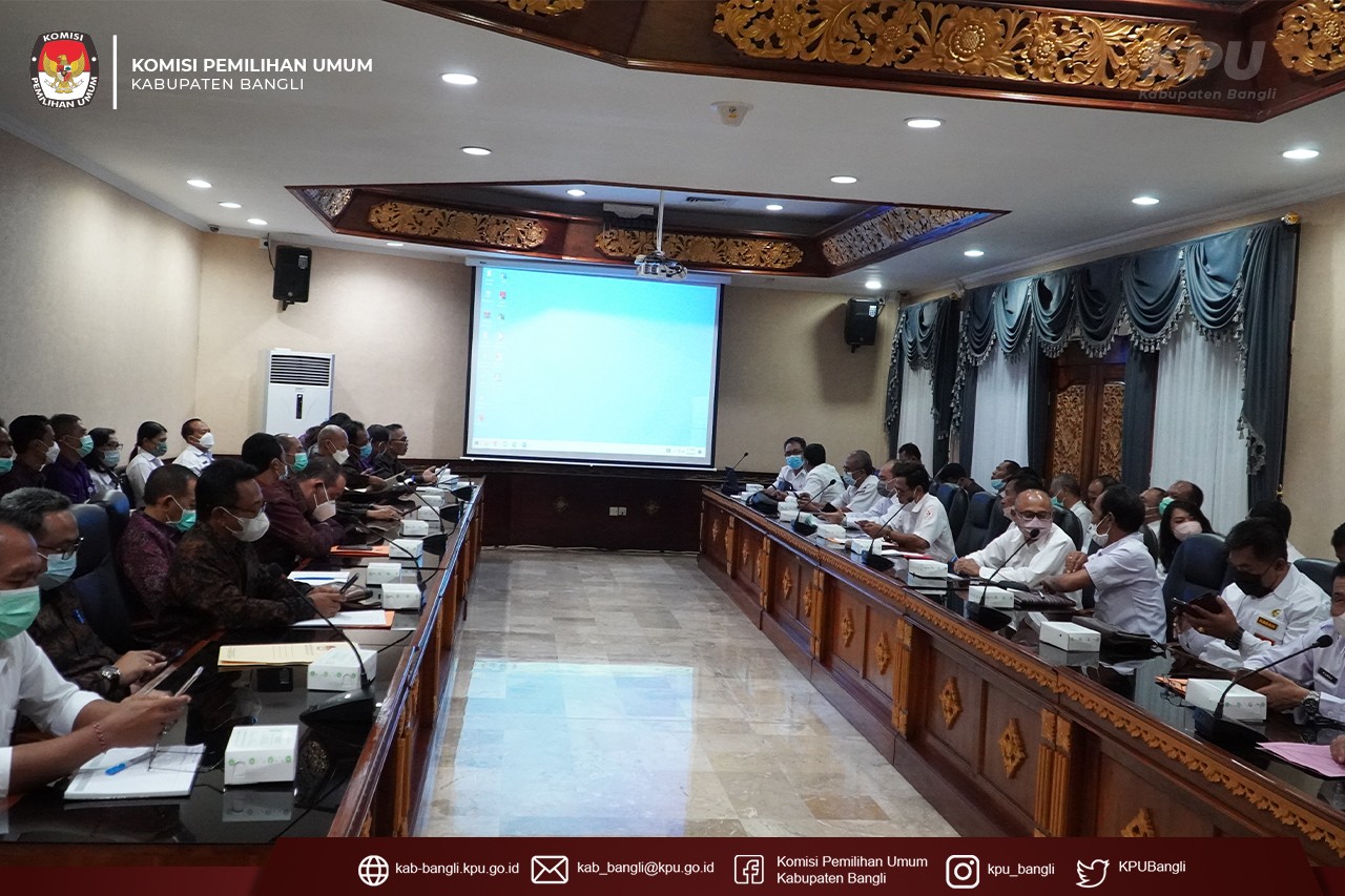 Bangli, kpu-bangli.kpu.go.id - Dalam rangka meningkatkan kualitas Data Pemilih di Kabupaten Bangli, maka KPU Kabupaten Bangli melaksanakan Rapat Koordinasi Pemutakhiran Data Pemilih Berkelanjutan (PDPB) Triwulan II Tahun 2022 (22/06/2022). Kegiatan ini dilaksanakan secara luring dan bertempat di ruang rapat KPU Kabupaten Bangli dengan tetap memperhatikan pelaksanaan protokol kesehatan. Dalam pelaksanaan kegiatan ini KPU Kabupaten Bangli mengundang Kapolres Bangli, Dandim 1626 Bangli, Kesbang Pol. Kabupaten Bangli, Dinas Kependudukan dan Pencatatan Sipil Kabupaten Bangli, Dinas PMD PPKB Kabupaten Bangli, Bawaslu Kabupaten Bangli, dan Partai Politik di Kabupaten Bangli.