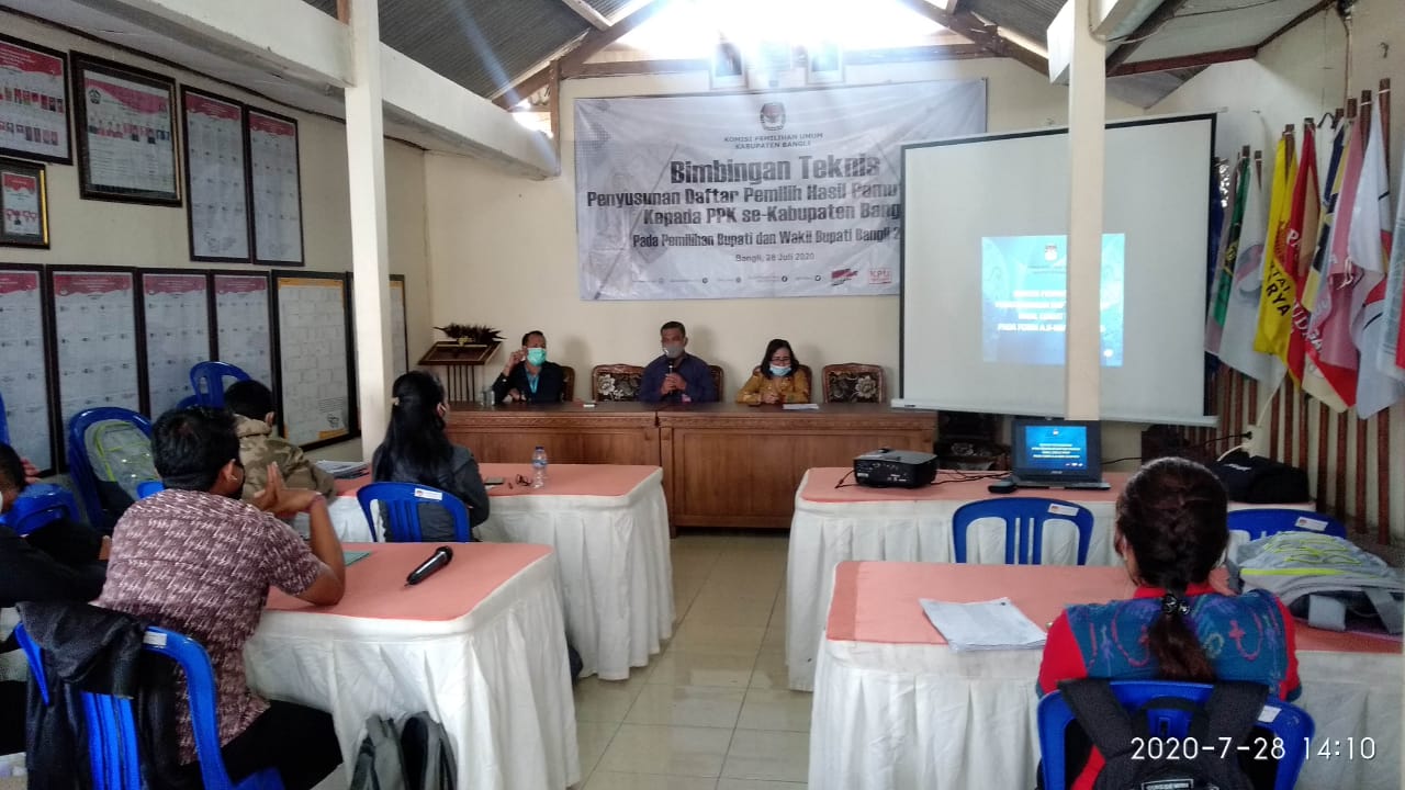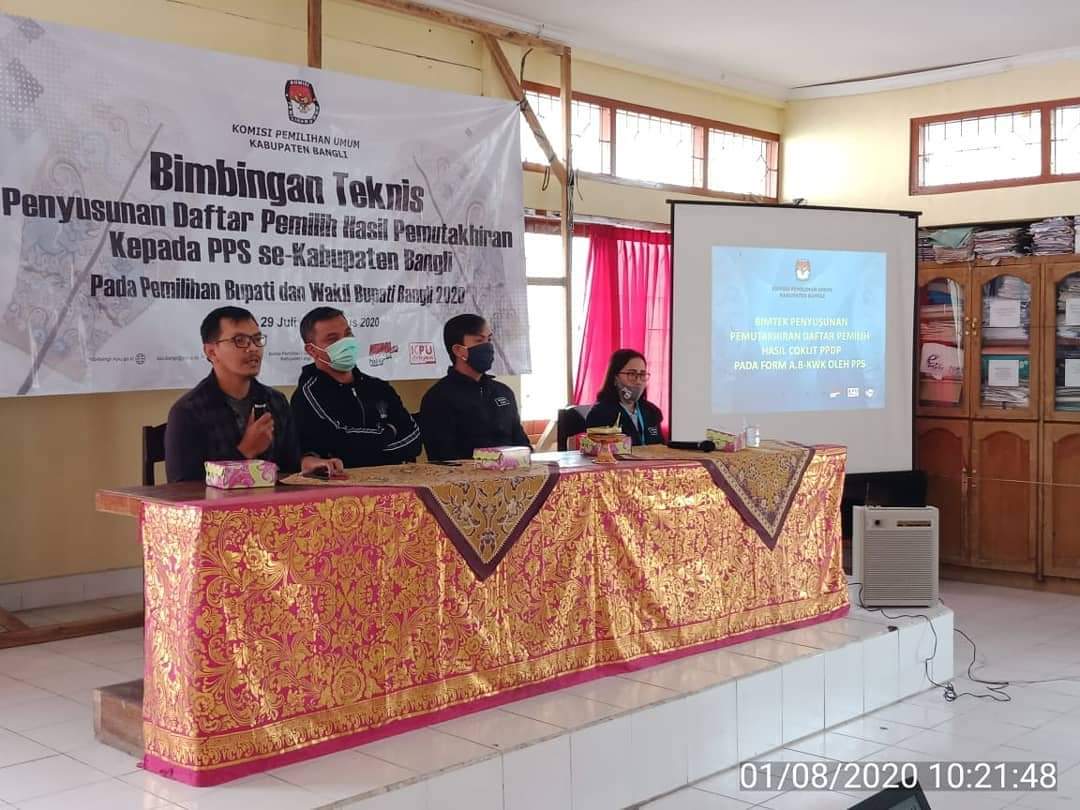 Sebagaimana tahapan penyelenggaraan Pemilihan Serentak Tahun 2020, hari ini, Rabu, 29 Juli 2020, pukul 10.15 WITA, KPU Kabupaten Bangli melakukan sosialisasi tahapan dan mekanisme pencalonan Pemilihan Bupati dan Wakil Bupati Bangli Tahun 2020. Sosialisasi dilaksanakan melalui media daring (zoom meeting) dengan peserta Forkompimda, Pimpinan instansi dan OPD, Muspika, dan Pimpinan Parpol di Kabupaten Bangli. Sosialisasi dibuka oleh Ketua KPU Kabupaten Bangli yang dalam sambutannya menyampaikan beberapa hal terkait kepastian pelaksanaan Pilkada Serentak Tahun 2020, proses pemutakhiran data pemilih yang sedang berjalan pada tahapan coklit yang dilakukan oleh Petugas Pemutakhiran Data Pemilih (PPDP) dam meminta kepada peserta sosialisasi agar memastikan diri sudah terdaftar dengan mengunjungi website: lindungihakpilihmu.kpu.go.id melalui ponsel masing-masing. Sosialisasi kemudian dilanjutkan oleh Anggota KPU Kabupaten Bangli dengan menyampaikan tahapan, jadwal, syarat dan mekanisme pencalonan Pemilihan Bupati dan Wakil Bupati Bangli Tahun 2020.