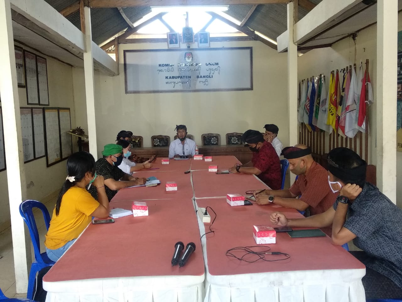 Sosialisasi PKPU Nomor 5 Tahun 2020 tentang Tahapan, Program dan Jadwal Penyelenggaraan Pemilihan Gubernur dan Wakil Gubernur, Bupati dan Wakil Bupati, dan/atau Wali Kota dan Wakil Wali Kota Tahun 2020 dilaksanakan oleh KPU Kabupaten Bangli pada hari selasa tanggal 30 Juni 2020 pukul 10.00 WITA.