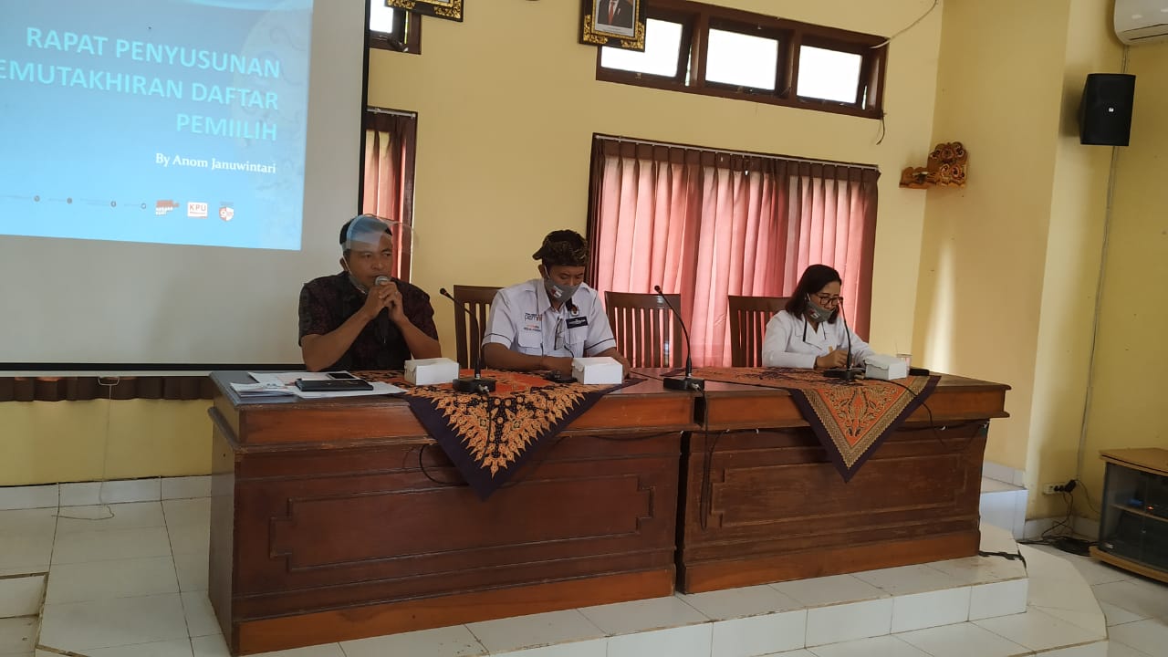 Selain menyampaikan tahapan, program dan jadwal I Wayan Sastrapuja juga menyampaikan langkah-langkah, Pertama mengaktifkan kembali PPK, Sekretariat PPK , dan PPS serta menetapkan Sekretariat PPS dan persyaratan calon PPDP, tahapan dan mekanisme serta jadwal pembentukan PPDP yang dimulai dari tanggal 24 Juni - 14 Juli 2020, sedangkan masa kerja PPDP dimulai dari tanggal 15 Juli - 13 Agustus 2020, yang nantinya akan melakukan coklit dilapangan. Narasumber juga menyampaikan strategi sosialisasi yang akan memaksimalkan media sosial , media online dan media daring lainnya.