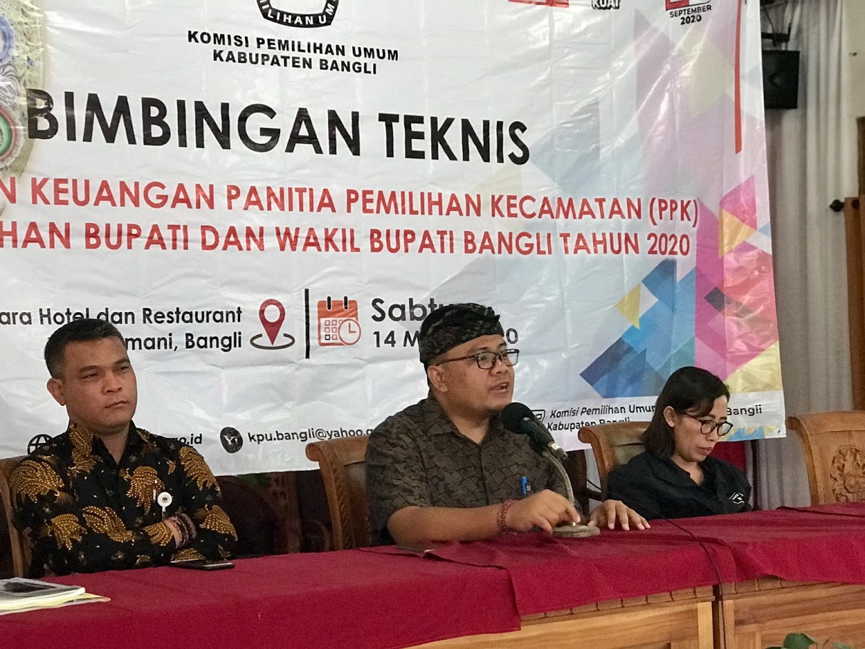 Pada kesempatan yang sama, Ketua KPU Provinsi Bali memberikan sambutan yang dibacakan oleh komisioner KPU Kabupaten Bangli. Beliau mengharapkan agar Anggota PPS menjaga integritas, netralitas dan independensi, untuk mewujudkan pemilihan serentak 2020 yang berintegritas.