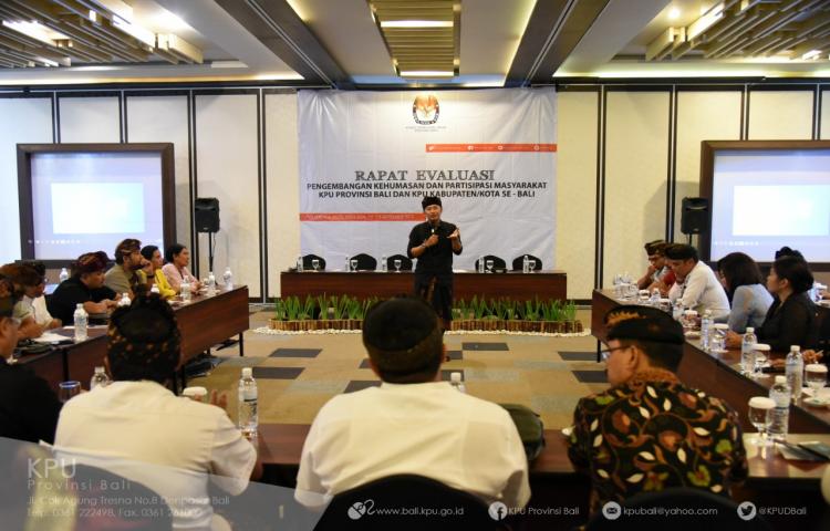 Selanjutnya I Gede John Darmawan, anggota KPU Bali Divisi Sosialisasi menegaskan bahwa partisipasi masyarakat pada Pemilu Tahun 2019 perlu dievaluasi, apakah karena sosialisasi yang bagus atau pengaruh lain seperti kesadaran politik masyarakat yang tinggi atau peran aktif peserta pemilu seperti calon atau partai politik. Selain itu disampaikan juga strategi yang dilakukan untuk meningkatkan partisipasi masyarakat pada Pemilu Serentak Tahun 2020, melalui kreasi sosialisasi atau kinerja kehumasan untuk mempublikasikan setiap kegiatan.