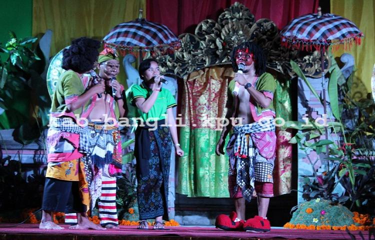 Bangli, kab-bangli.kpu.go.id - MasyarakatBanglikhususnya di Kecamatan Tembuku kembalidiingatkansoalkepemilikan KTP elektronik (KTP-el). Identitaskependudukanitumerupakansyaratutamayang mestidimilikimasyarakatmenjelanghajatanPemilihan Gubernur dan Wakil Gubernur (Pilgub) Bali Tahun 2018 danpenyelenggaraanPemilihan Umum Legislatif (Pileg) danPemilihan Umum Presiden dan Wakil Presiden (Pilpres) tahun2019medatang. Hal ituterungkapdalamacaraPentasBudayaSosialisasiPemilihanGubernurDan WakilGubernurBali Tahun 2018 di DesaUndisanKecamatanTembukuSelasa (26/12) malam. Dalamacarayang dimeriahkan olehAnggundan Rare Kualseniman asal Bulelengitudihadiri kurang lebih 250 tokohmasyarakat se-KecamatanTembukuserta ratusan masyarakatTembukutumpahruahmenyaksikansosialisasi yang dikemasdalambentukpargelaran kesenian. Ketua KPU KabupatenBangli IDewaAgungGedeLidartawan mengatakan, pentasbudayamerupakansalahsatubentuksosialisasi yang sengajadikemaspihaknya. Selainbentuksosialisasitatapmuka, bersosialisasimelibatkansenimanmerupakansalahsatuupayaefektifdalammendatangkanmasyarakat yang lebihbanyak.Materisosialisasisepenuhnyadisampaikanolehseniman. Terutamamenyangkuttanggalpelaksanaandansyaratuntukmenjadipemilih. Mengenaisyaratutamauntukbiasmenjadipemilih, lebihmenitikberatkanpadakepemilikandankegunaanKTP-el. DimanamasyarakatBangli yang belummemilikiidentitaskependudukaninimengacu data Dinas Kependudukan dan Catatan Sipil (Disdukcapil) KabupatenBangliyang mencapai 36 ribulebih. Jumlahnyainitentusangatfantastis, memaksapihaknyameluncurkanprogram ‘’Kejar KTP -el’’ bekerjasamadenganDisdukcapil, BabinsadanBabinkamtibmas. UntukitubagimasyarakatTembuku yang belummelakukanperekamanataupunaktivasi, agar segeramendatangi KantorCamatTembukuatauDisdukcapilKabupatenBangli. Hal senadadikatakanCamatTembuku I DewaAgungPutuPurnama.PihaknyaterusmenghimbaumasyarakatTembuku agar tertibadministrasikependudukan. Selain untukkepentinganPemilu, KTP-el merupakanidentitaskependudukan yang wajibdimilikisemuawarga. BukansajauntukkepentinganPemilu, namunkepentingan lain berkaitanpemberianlayanandaripemerintahsyaratutamanyaadalah KTP-el. (puj/gpr/foto:kyd/kpubgl)
