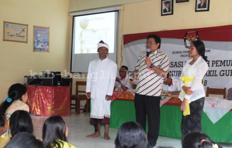 Begitu juga dengan masyarakat Bangli yang menikah ke kabupaten lain. Secara administrasi mereka telah dimutasi ke daerah tujuan. Namun sesuai aplikasi, jika dalam rentan waktu 31 hari masyarakaat itu tidak melapor ke Disdukcapil yang dituju. Maka aplikasi secara otomatis langsung kembali ke Bangli. Hal ini pernah terjadi di Bangli. Diharapkan, semua pihak bisa ikut membantu pihaknya ikut mensosialisasikan Administrasi Kependudukan (Adminduk). Baik ke sekolah maupun desa yang kini jumlah desa sudah dissar mencapai 48 desa dari 72 desa di Kabupaten Bangli. Mengenai masyarakat yang menikah dibawah usia 16 tahun, sesuai aturan dan aplikasi penerbitan akte perkawinan harus disertai dengan surat ijin pengadilan. Sedangkan usia 16 - 17 tahun baru ijin dari orang tua. ‘’Berdasarkan data per 18 Juni 2017, ada 2.192 orang berusia 17 tahun ppada Rabu 27 Juni 2018. Sesuai sistem aplikasi, mereka baru bisa melakukan perekaman satu hari setelah hari rabu. Mohon masalah ini dikoordinasikan oleh KPU Bangli karena sistem aplikasi memang sudah seperti itu,’’pungkasnya.