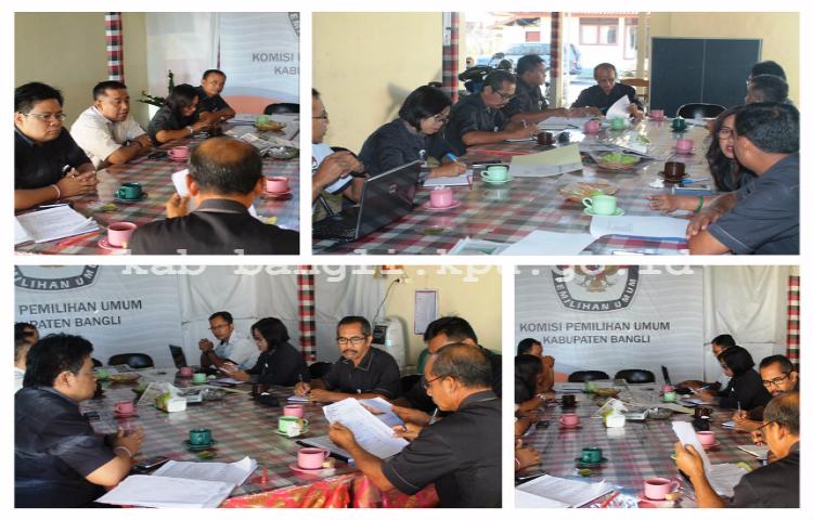 Demikian terungkap dalam rapat pleno antara komisioner KPU Kabupaten Bangli dengan jajaran sekretariat Kamis (23/2), menindak lanjuti surat sekretaris KPU Kabupaten Bangli nomor 359/Ses Prov-016/II/2017 dan Sekjen KPU RI nomor 206/SJ/II/2017 tentang permohonan data informasi/permasalahan bidang SDM.