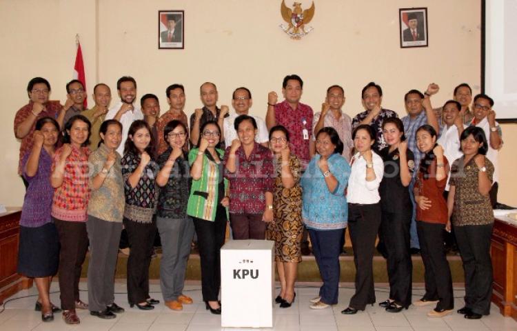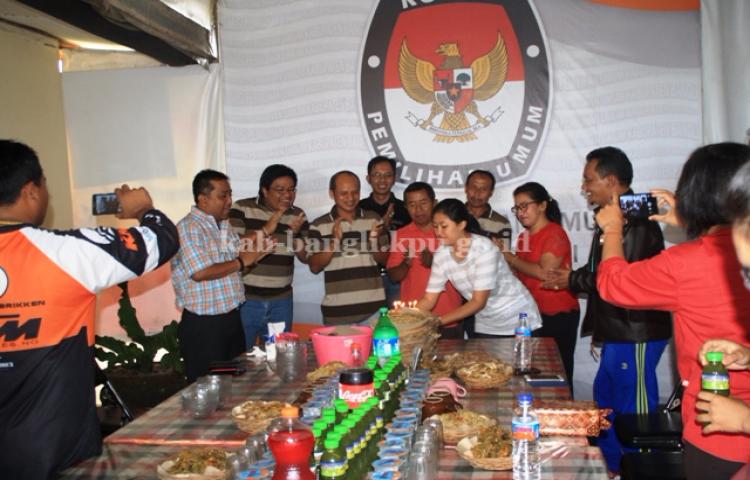 Bangli, kab-bangli.kpu.go.id - Dalam melepas tahun 2016 menyongsong hadirnya mentari tahun 2017, Komisi Pemilihan Umum (KPU) Kabupaten Bangli Sabtu (31/12) kemarin merayakan sederhana. Kegiatan silaturahmi itu melibatkan seluruh komisioner dan kesekretariatan, juga dirangkai dengan melepas I Nengah Paramarta (Kasubag Teknis) yang memasuki masa pensiun. Juga perayaan ulang tahun dua orang staf KPU Kabupaten Bangli. I Nengah Paramarta mengatakan, selama dirinya menjadi Kasubag di KPU Kabupaten Bangli banyak hal positif yang menjadi kenangan baginya. Terlepas dari kekurangan yang dimiliki selama menjalankan tugas, dirinya merasa sangat berkesan dengan pola kerja seperti jalur koordinasi yang jelas. Kendatipun koordinasi juga dialami dirinya selama bertugas di instansi Pemkab Bangli, namun jalur koordinasi di KPU Kabupaten Bangli sangat berbeda. Dimana jalur koordinasi di KPU Kabupaten Bangli sangat jelas. Untuk itulah drinya merasa sangat berkesan dan mendapatkan banyak pelajaran. Sementara itu Ketua KPU Kabupaten Bangli Dewa Agung Gede Lidartawan,STP., M.P meminta agar apa yang telah dilakukan pada tahun 2016 menjadi bahan renungan dan evaluasi. Terutama kinerja di tahun 2017 agar ditingkatkan. Terlebih pada tahun 2017 merupakan tahun dengan agenda kerja yang mulai padat. Apa yang selama ini menjadi kekurangan diri dan lembaga agar diperbaiki dan ditingkatkan. Terciptanya koordinasi yang baik selama ini kata kuncinya adalah kedekatan. Baik dalam keadaan suka maupun duka, senantiasa selalu bersama. Untuk itulah sangat penting kedepan pola ini terus dipertahankan dan ditingkatkan. ‘’Tahun 2017 merupakan tahun yang agenda kerjanya mulai padat. Verifikasi faktual Parpol hingga mulai tahapan Pilkada Bali. Ini perlu konsentrasi dan kerjasama yang baik ,’’pintanya.(puj/foto : kpubgl)