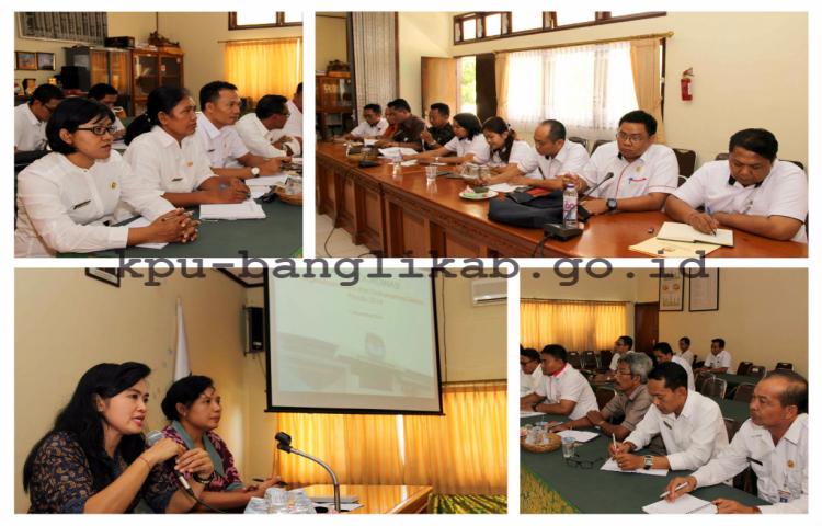 kpu-banglikab.go.id - Denpasar, Pengelolaan Data dan Dokumen pasca Pemilu merupakan hal yang tidak kalah pentingnya dengan penyelenggaraan Pemilu tersebut. Untuk itu, diperlukan tata kelola serta instrument yang dapat mendukung pengelolaan data-data yang ada. Dengan maksud menyeragamkan pola pengelolaan data dan dokumen tahapan teknis dilingkungan Komisi Pemilihan Umum (KPU) Provinsi dan Kabupaten/Kota se-Bali, dilaksanakan Rapat Koordinasi Pengelolaan Data & Dokumen Tahapan Teknis dan Calon Terpilih Pemilu 2014 (01/11/16) yang mengundang Anggota KPU Divisi Teknis serta Kepala Sub Bagian Teknis Kabupaten/Kota se-Bali. Rapat Koordinasi ini dilakukan diruang rapat KPU Provisni Bali Jalan Cok Agung Tresna Denpasar.