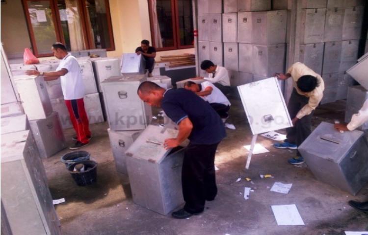 kpu-banglikab.go.id - Bangli, Komisi Pemilihan Umum (KPU) Kabupaten Bangli melakukan loading logistik ke dalam kotak suara. Loading seluruh logistik pemilihan bupati dan wakil bupati Bangli dilaksanakan sejak 30 Nopember hingga 5 Desember 2015, dilakukan oleh PPS dan PPK. Dipastikan H-2 jelang pencoblosan, semua logistik sudah didistribusikan ke desa. Seluruh logistik akan mulai didistribusikan sejak 6 - 7 Desember 2015, akan didistribusikan pertama kali di Kecamatan Kintamani. Dilanjutkan tiga kecamatan meliputi Susut,Tembuku,Bangli Senin (7/12). Ketua KPU Dewa Lidartawan didampingi Divisi Logistik Putu Ariyanti Suningsih mengatakan, semua logistik yang dibutuhkan saat pencoblosan seperti surat suara, tinta dan kebutuhan lainnya sudah siap. Surat suara setelah disortir dan dilipat juga telah dibagi per TPS. ‘’Sekarang dilakukan penghitungan kembali sesuai jumlah pemilih di TPS sebelum disegel dan dimasukkan dalam kotak,’’ujarnya. Dikatakan, proses pengecekan surat suara berlangsung dalam empat kali saringan. Dengan begitu jumlah surat suara benar-benar pas. Demikian juga kebutuhan logistik lainnya seperti tinta, formulir, alat coblos semuanya dipastikan lengkap. Setelah semuanya masuk dalam kotak, mulai Minggu (6/12) mendatang, pihaknya mulai mendistribusikan logistik ke desa. Proses distribusi berlangsung selama dua hari. ‘’Tanggal 8 Desember akan dilakukan monitoring oleh tim terkait untuk memastikan logistik sudah tiba dengan selamat,’’imbuhnya. Begitujuga dengan kelayakan kendaraan pengangkut logistic seperti truk dan pick up akan dicek kondisinya oleh Sat.Lantas Polres Bangli. Jika kondisinya bagus dan layak, barulah akan dipergunakan. Begitujuga dengan kelengkapan sopir yang akan mengemudi. Jangan sampai sopir yang bertugas mengangkut seluruh logistic malah tidak mengatongi SIM. Sementara untuk menjaga keamanan logistik, proses distribusi akan dikawal anggota polisi.(puj/foto:kpubgl)